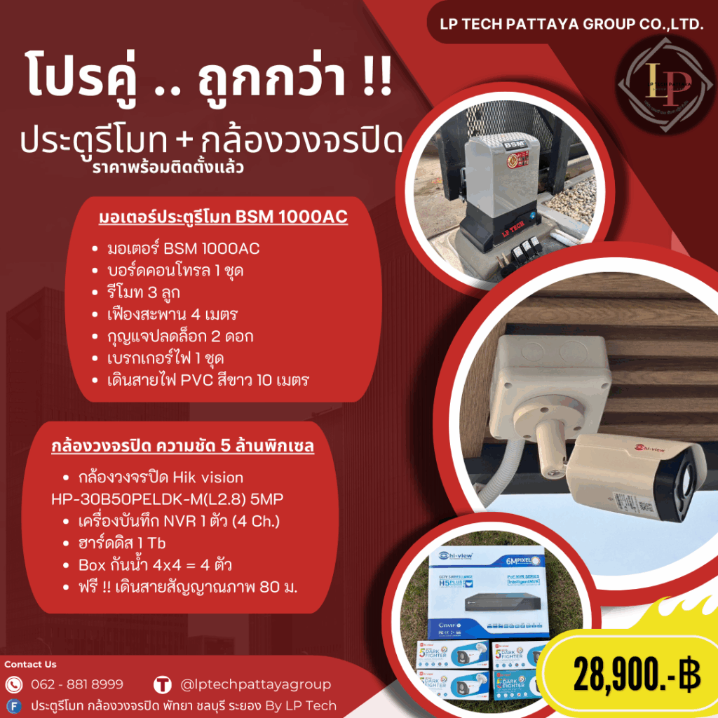 สอบถาม และประเมินหน้างาน ฟรี เบอร์โทร : 062 - 881 8999 / 093 - 698 4411Line Official : @lptech TikTok : @lptechpattayagroup Website : www.lptechgroup.com บริหารงานโดย : บริษัท แอลพี เทค พัทยา กรุ๊ป จำกัดโดยช่างติดตั้ง และชำนาญมากกว่า 10 ปี จำหน่าย ติดตั้ง ซ่อมบำรุง ประตูรีโมท กล้องวงจรปิด แขนกั้น ประตูบานเลื่อนอัตโนมัติ เครื่องสแกนลายนิ้วมือ เครื่องสแกนใบหน้า คีย์การ์ด ประตูโรงรถ สัญญาณกันขโมย ล็อกแม่เหล็กไฟฟ้า ฯลฯ จำหน่าย ติดตั้ง ซ่อมบำรุง#ประตูรีโมท #ประตูอัตโนมัติ #ประตูรีโมทพัทยา #แขนกั้น #คีย์การ์ด #ออโต้ดอร์ #ช่างประตูรีโมทพัทยา #กล้องวงจรปิดพัทยา #AutoDoor #DigitalDoorLock #VideoDoorPhone #CCTV #IPCamera บริษัท แอลพี เทค พัทยา กรุ๊ป จำกัดบริการ จำหน่าย ติดตั้ง ซ่อมบำรุง #ประตูรีโมท #ประตูอัตโนมัติ #ประตูรีโมทพัทยา #แขนกั้น #คีย์การ์ด #ออโต้ดอร์ #ช่างประตูรีโมทพัทยา #กล้องวงจรปิดพัทยา #ประตูโรงรถ #ประตูบานสวิง #ประตูบานเฟี๊ยม #สแกนนิ้วมือ #สแกนใบหน้า #ประตูล็อกแม่เหล็ก #CCTV #IPCameraสอบถาม และประเมินหน้างาน ฟรี !!ฝ่ายขาย : 062 – 881 8999 / 093 – 698 4411Line@ : @lptech